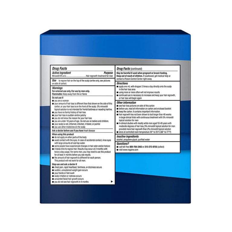 - 3-month supply of men's Rogaine extra strength 5% minoxidil topical solution to help treat hair loss, maintain hair density, and allow for the regrowth of fuller hair