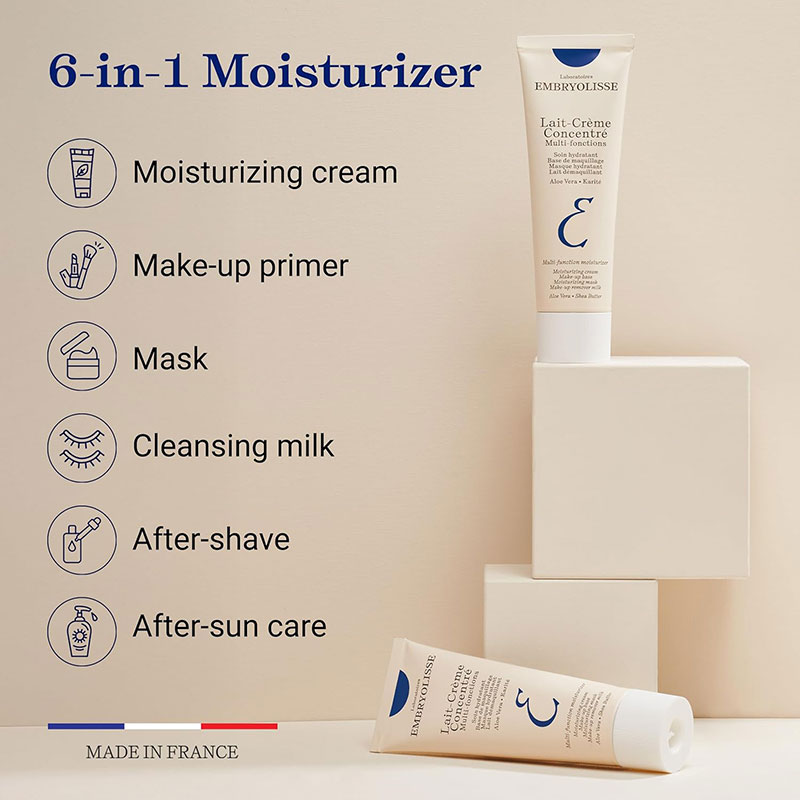 A favorite among dermatologists for decades and lauded by beauty professionals and make-up artists of the stars, this all-around product is their secret to beautiful skin. With moisturizing and nutritive properties, thanks to a blend of ingredients from natural origin rich in essential fatty acids and vitamins, it delivers nutrients to the skin, retains moisture and helps protect it from aggression. Plumped up, the skin is silky smooth, soft, supple and glowing. Exceptional care that serves as an ideal make-up base for priming the complexion, as a moisturizer, or as a beauty mask, this creamy milk leaves a comfortable satin veil even on dry skin. It can also be used for post-shaving care.