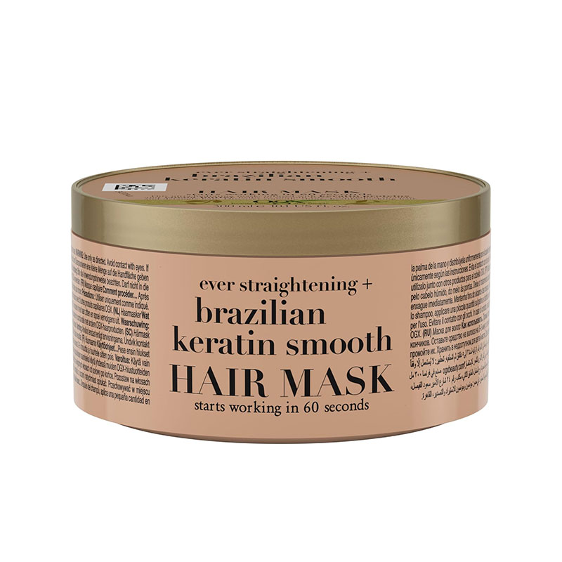 The OGX Brazilian Keratin Smooth Hair Mask provides important moisture, strengthens the hair against hair breakage, smooths frizz and detangles. In addition, the moisturising hair mask provides silky supple hair with just one application and gives up to 72 hours a smooth and shiny look. In addition, the smoothing anti-frizz hair treatment without sulphate-containing surfactants provides the hair with important moisture, gives radiant shine and works after 60 seconds. The gentle hair care mask with keratin protein and cocoa butter is ideal for frizzy, curly or wavy hair.