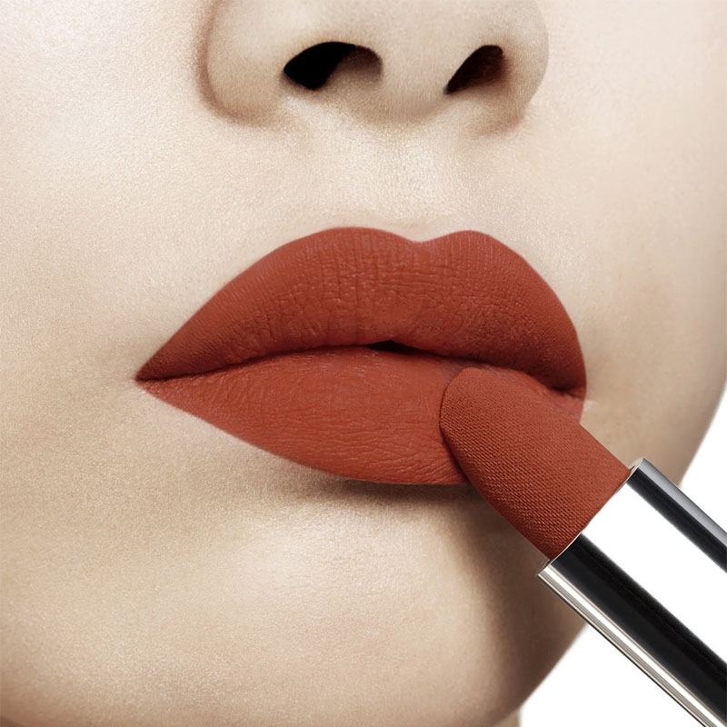 – The velvet finish reveals an intense and luminous matte finish with a malleable sensorial quality. Its film has a barely-there feel that leaves lips plump and visibly smooth for 8 hours.³